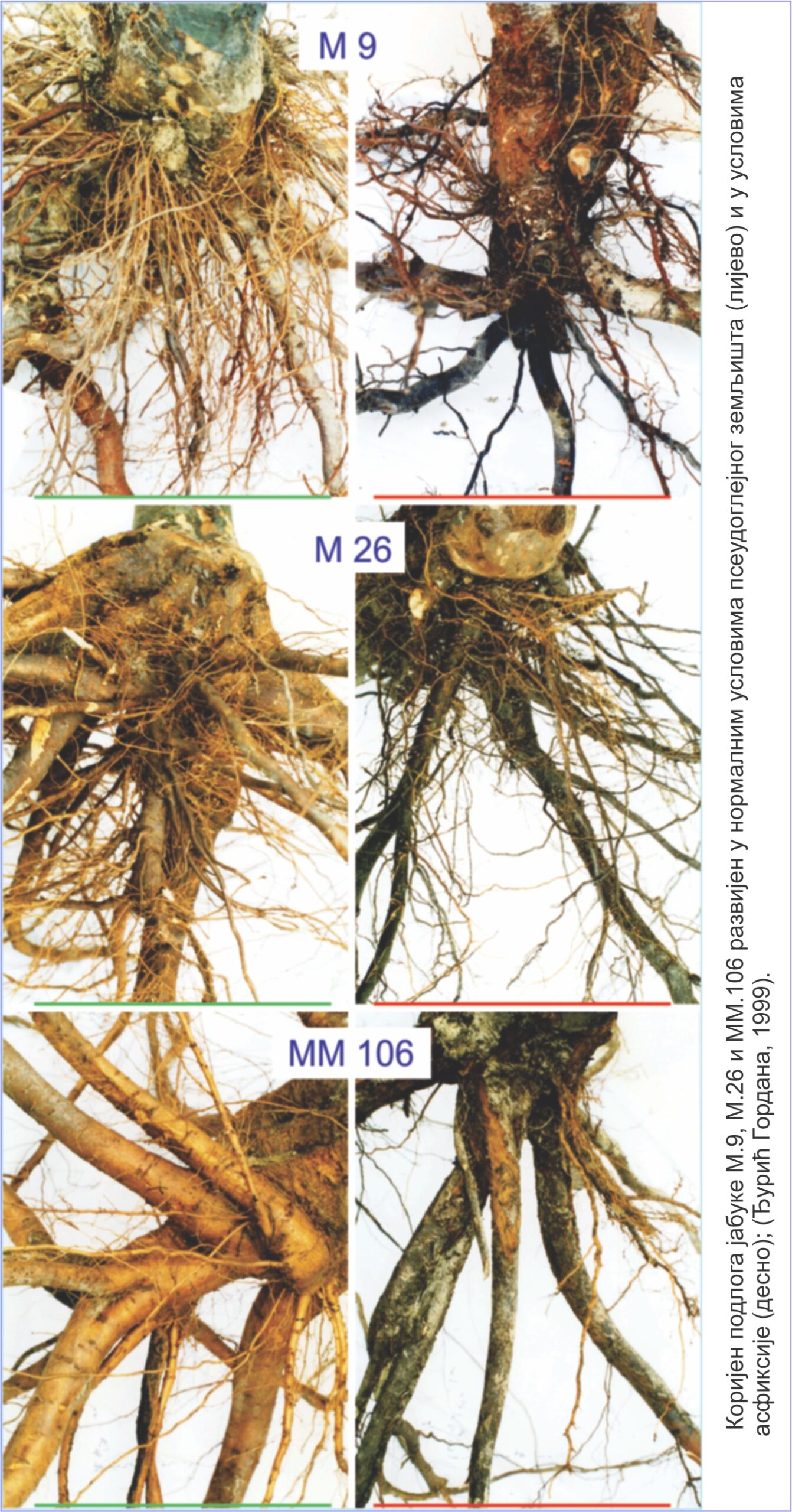 - Анализа коријена: анализа коријена у хоризонталном правцу врши се методом скелета, а његовог ширења у дубину, поред методе скелета, користи се и метода копања профила на одређеним растојањима од дебла воћке, а што зависи од старости воћке – 1-2 дана на терену и 5 дана рада у лабораторији